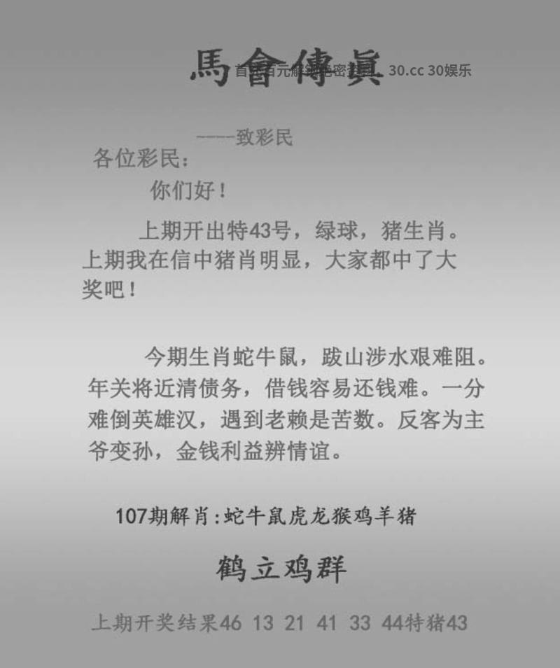 107期:绝杀叁肖【狗龙蛇】开:鸡33准 |